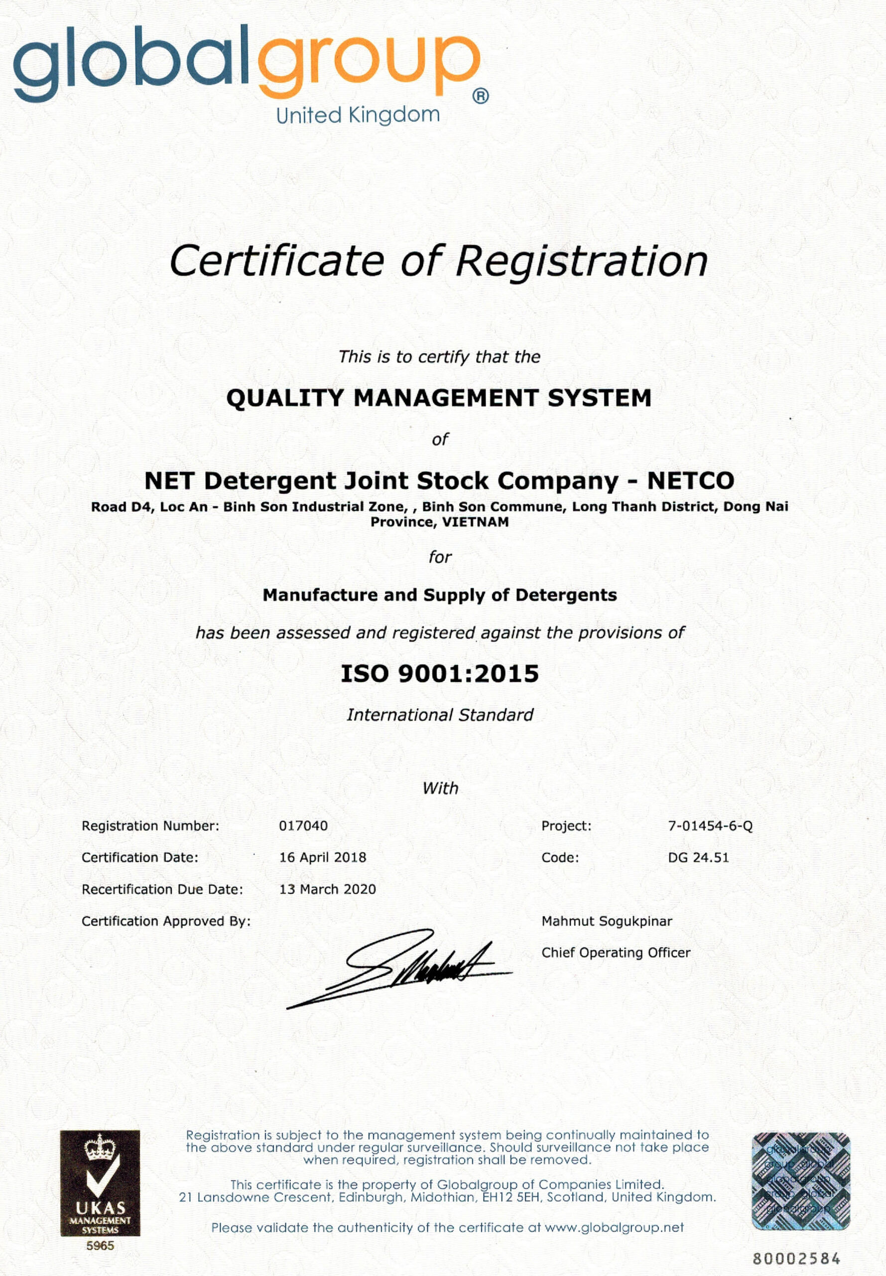 Đường D4, KCN Lộc An-Bình Sơn, X.Bình Sơn, H. Long Thành, T. Đồng Nai | ĐT: 02513.682.102 | Fax: 02513.682.106